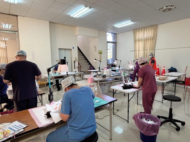 活動現場動員多位獸醫師替毛小孩進行絕育…