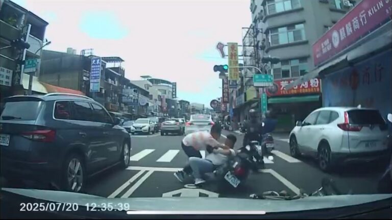 ▲單車男逆向險撞騎士!2男馬路全武行 民眾…