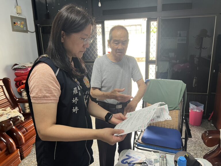 ▲南投縣榮服處副處長羅婷婷(左)關懷榮民眷…