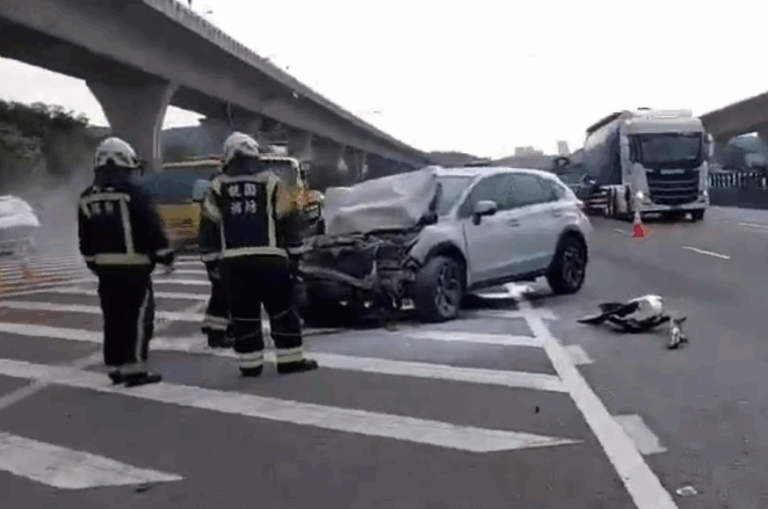 國道桃園段追撞火燒車 駕駛輕傷送醫。 (…