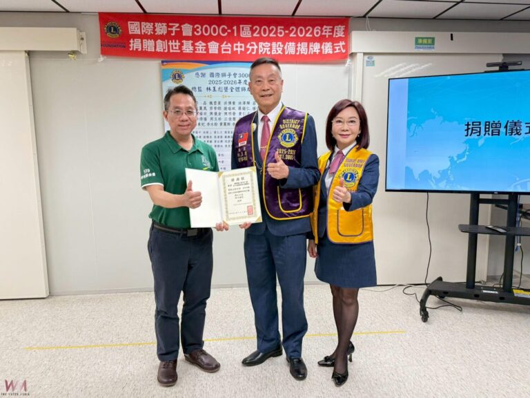 創世台中院長陳韋龍致贈感謝狀予國際 獅子…