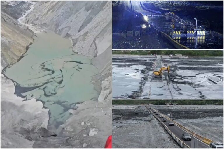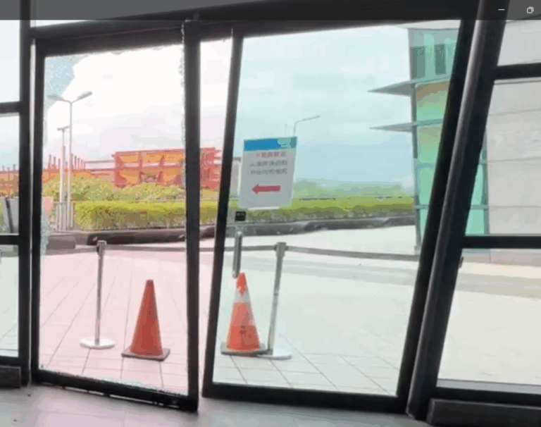 台中高鐵站大門被強風吹破。翻攝畫面 …