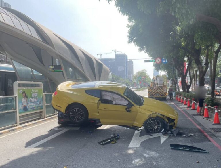 台中「福特野馬」跑車自撞人行道及路邊車…