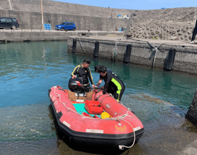 消防隊員到潛水客失蹤地點搜救。翻攝畫面 …