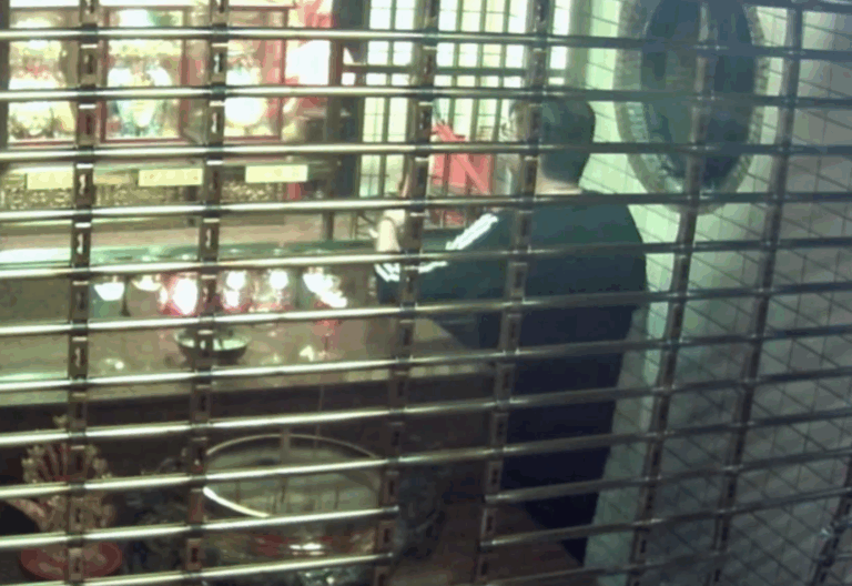 男子持鐵剪前斷鐵條竊取神像上的金牌。翻…