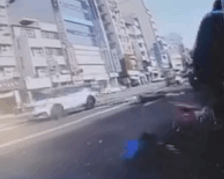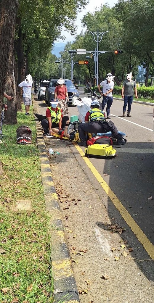 台中機車騎士被撞倒連人帶車滑行差點掃到…