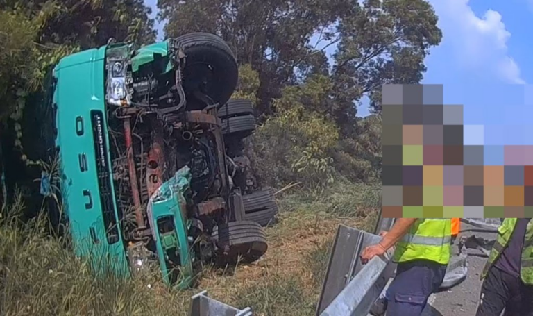 國道1號大貨車翻落邊坡。翻攝畫面 【lai…
