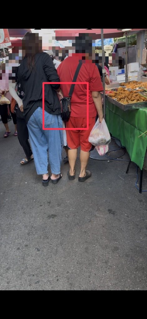 婦人偷竊民眾皮包內財物。翻攝畫面 …