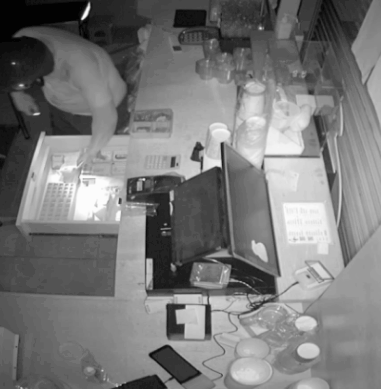竊賊侵入豐原手搖飲料店行竊。翻攝畫面 …