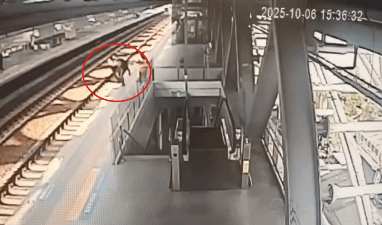 路陳姓街友將站務人員推落鐵軌。翻攝畫面 …