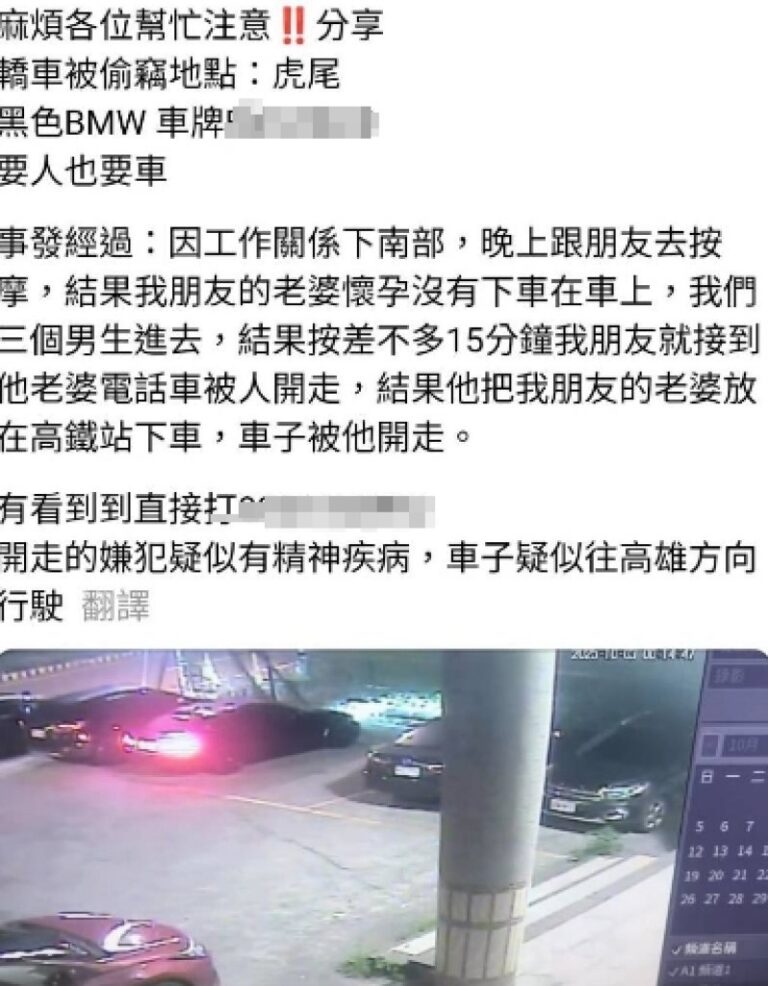 民眾PO文描述竊車賊偷車連車內孕婦一併…