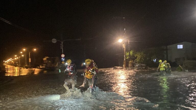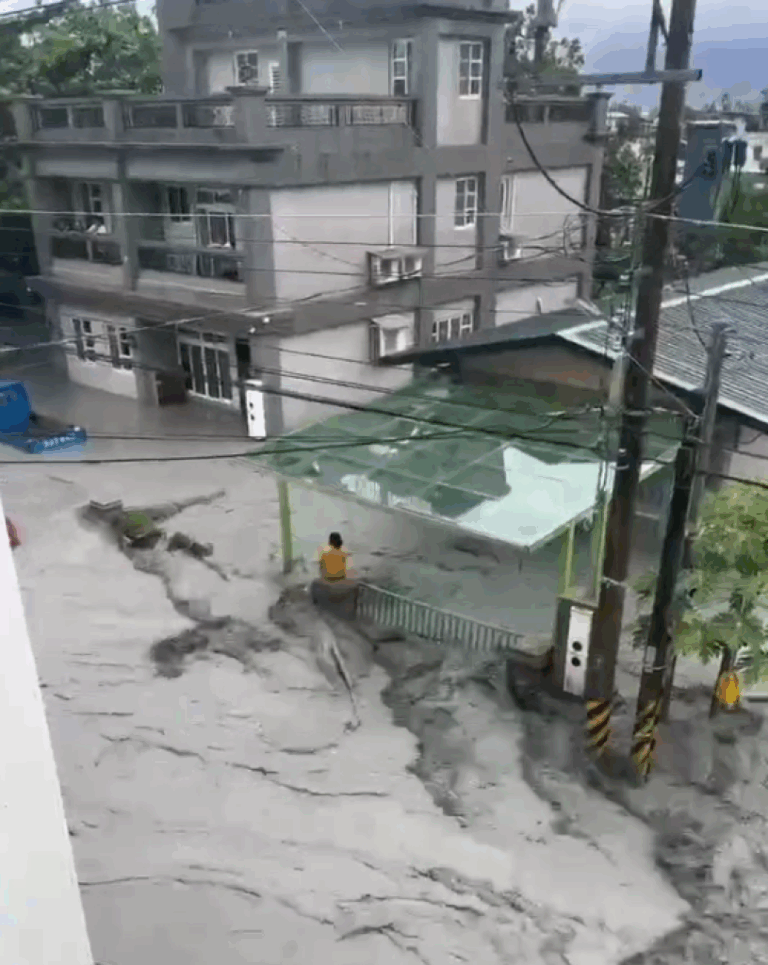 花蓮縣光復鄉街道如河流,受困民眾等待救…