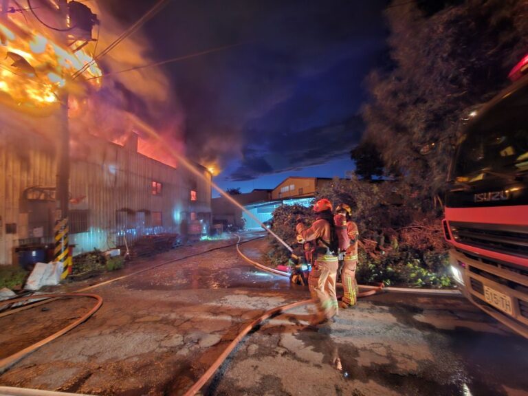 雲林木材工廠鐵皮廠房火警,消防隊員前往…