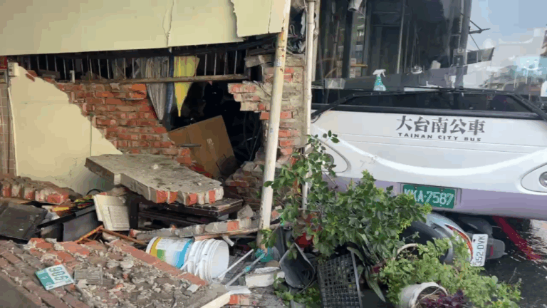 ▲台南公車衝民宅撞瞬曝!路人全嚇壞 警方…