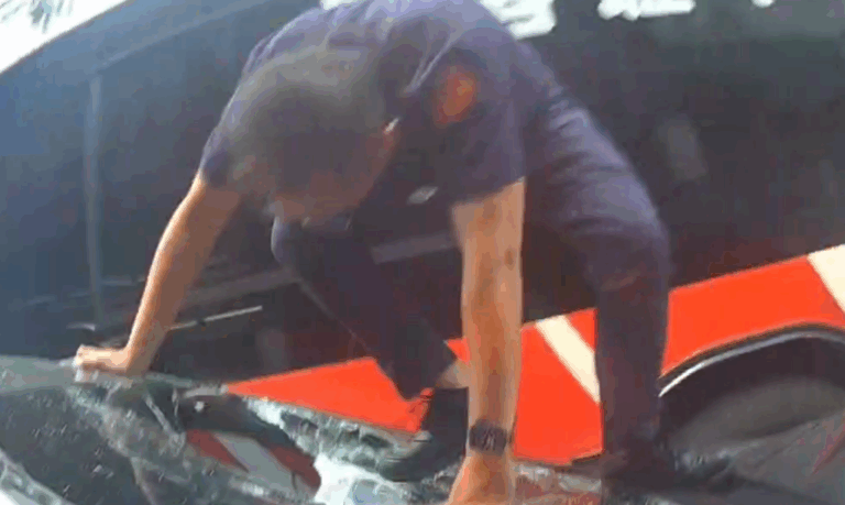 員警追捕詐欺嫌犯跳上對方車頂踹破擋風玻…