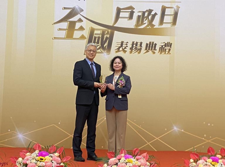 ▲桃園市政府賴副秘書長淑華代表市府領獎。…