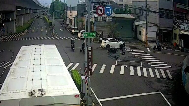 ▲悚!台南女駕駛違規「撞機車再撞柱」 騎…