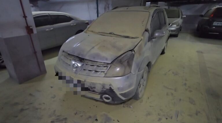▲轎車自燃,所幸住戶及時以滅火器撲滅。(…
