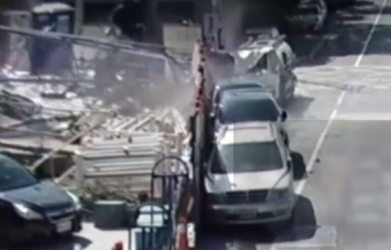 五股工地驚險瞬間!龐然大物「吊車」翻覆…