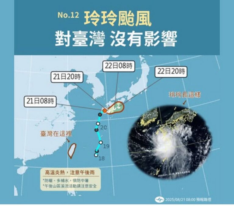 生活中心∕綜合報導 玲玲颱風8月21日上午8…