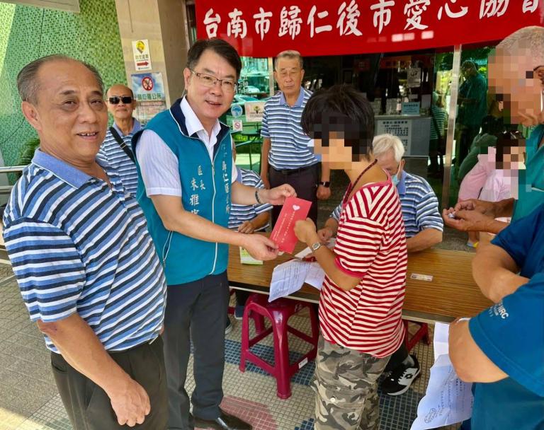 ▲歸仁區公所區長朱雅宏發放濟助金。(圖/區…