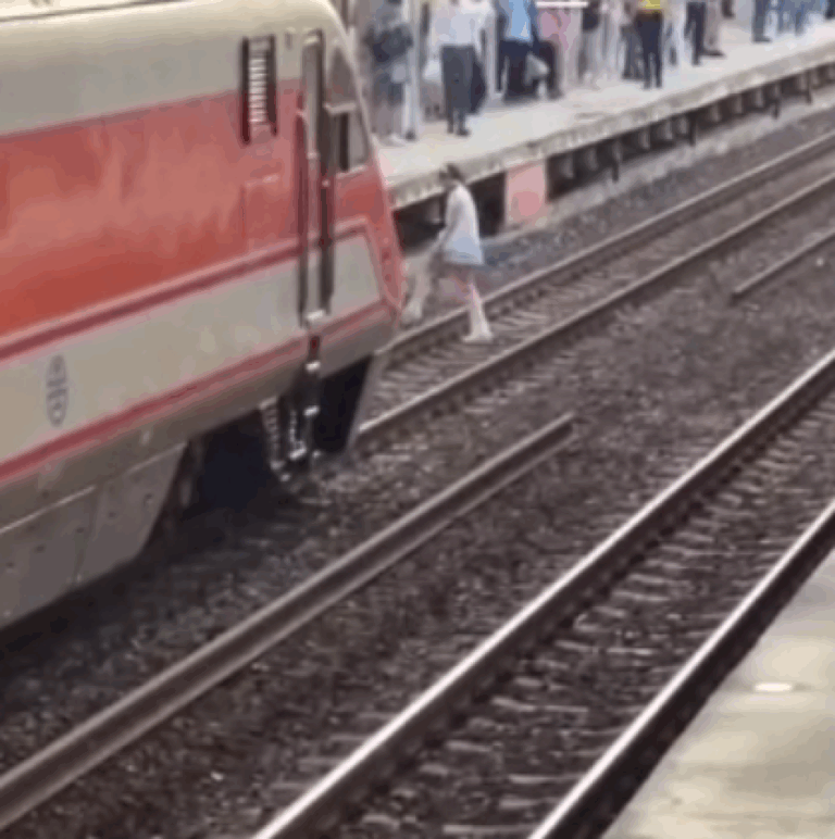 一名女子在自強號欲駛進桃園車站時落軌,…