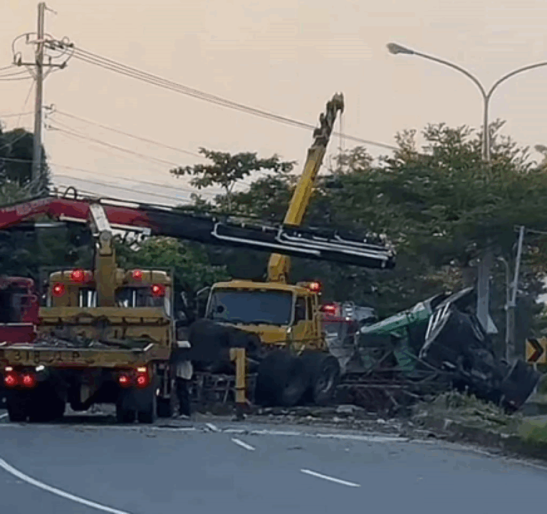 台1線苗栗西湖路段聯結車自撞翻覆雙向交通…