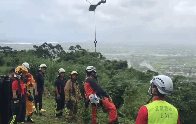 消防隊以吊掛方式至賓士車墜落地點救援受…