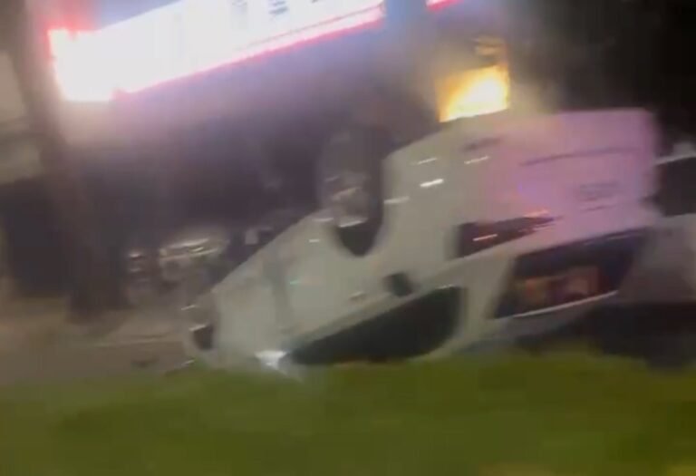 桃園市新屋區賓士車撞擊民宅起火車子撞爛…
