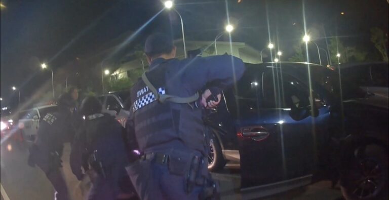 員警長短槍及防彈盾牌齊上攔車逮捕毒犯。…