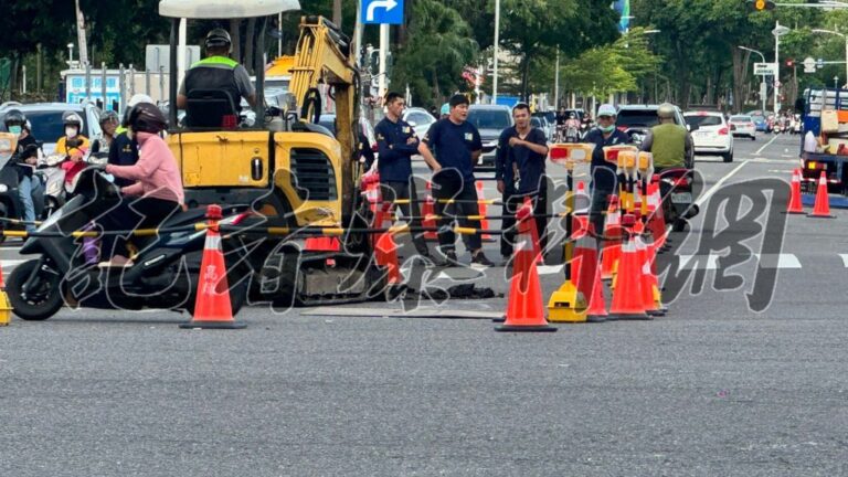 ▲高雄中華五路出現天坑。(圖/記者金東天…