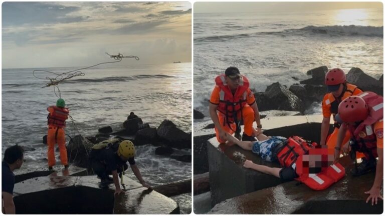 台南黃金海岸方舟戲水險滅頂 攀附消波塊求援