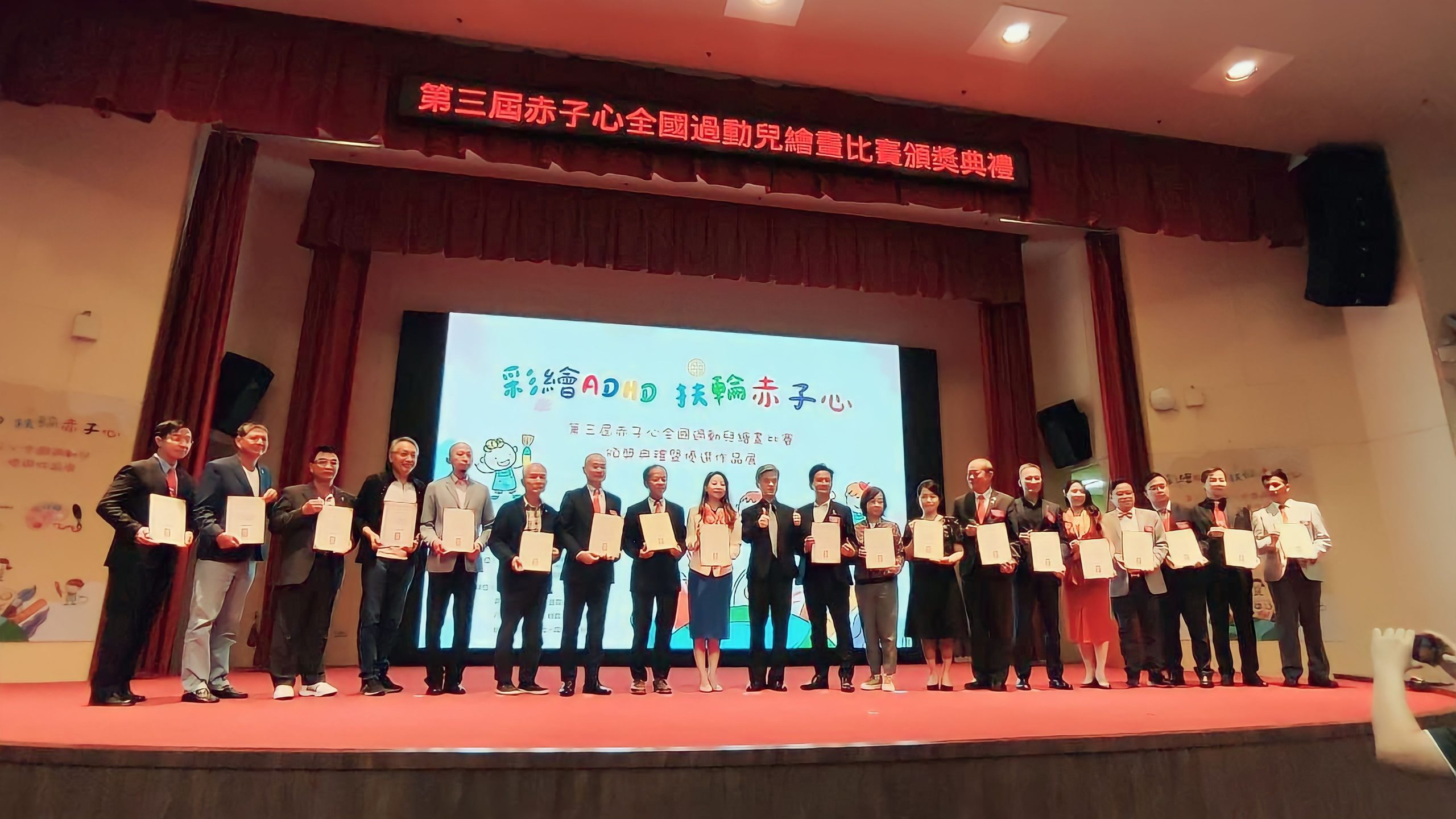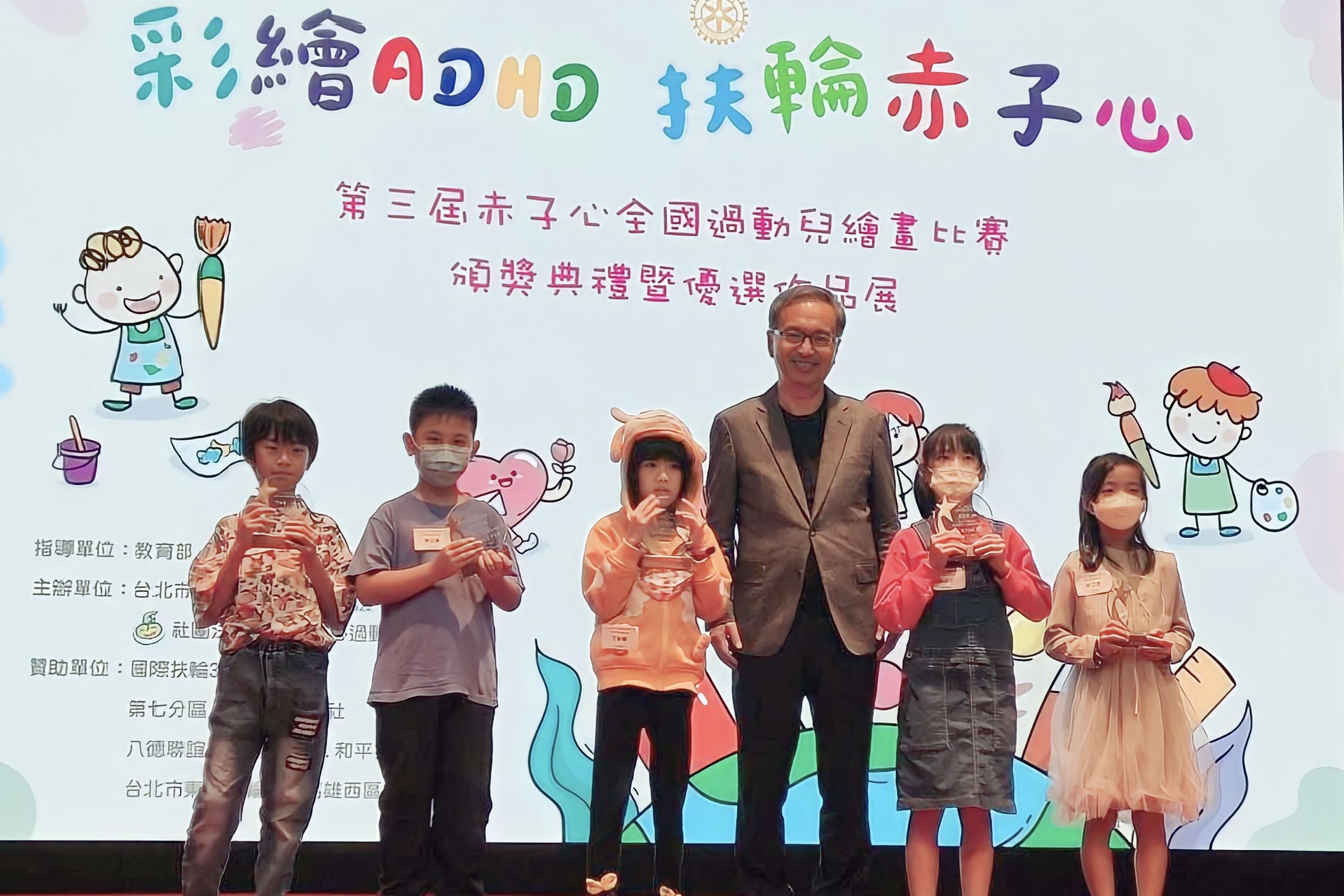 今天的頒獎典禮不僅象徵活動的圓滿成功,更期望透過活動,宣導「注意力不足過動症」(ADHD)的知能,看見他們的優勢。Edward Hallowell博士,在2005年的著作《Delivered from Distraction》一書中提到:過動不是一種「疾病」或「失調」,它是某種「特質」,我們期盼社會大眾對於過動的孩子能給予更多的理解與讚賞,您將會發覺每位過動兒都有其自屬的特殊天賦與潛能。