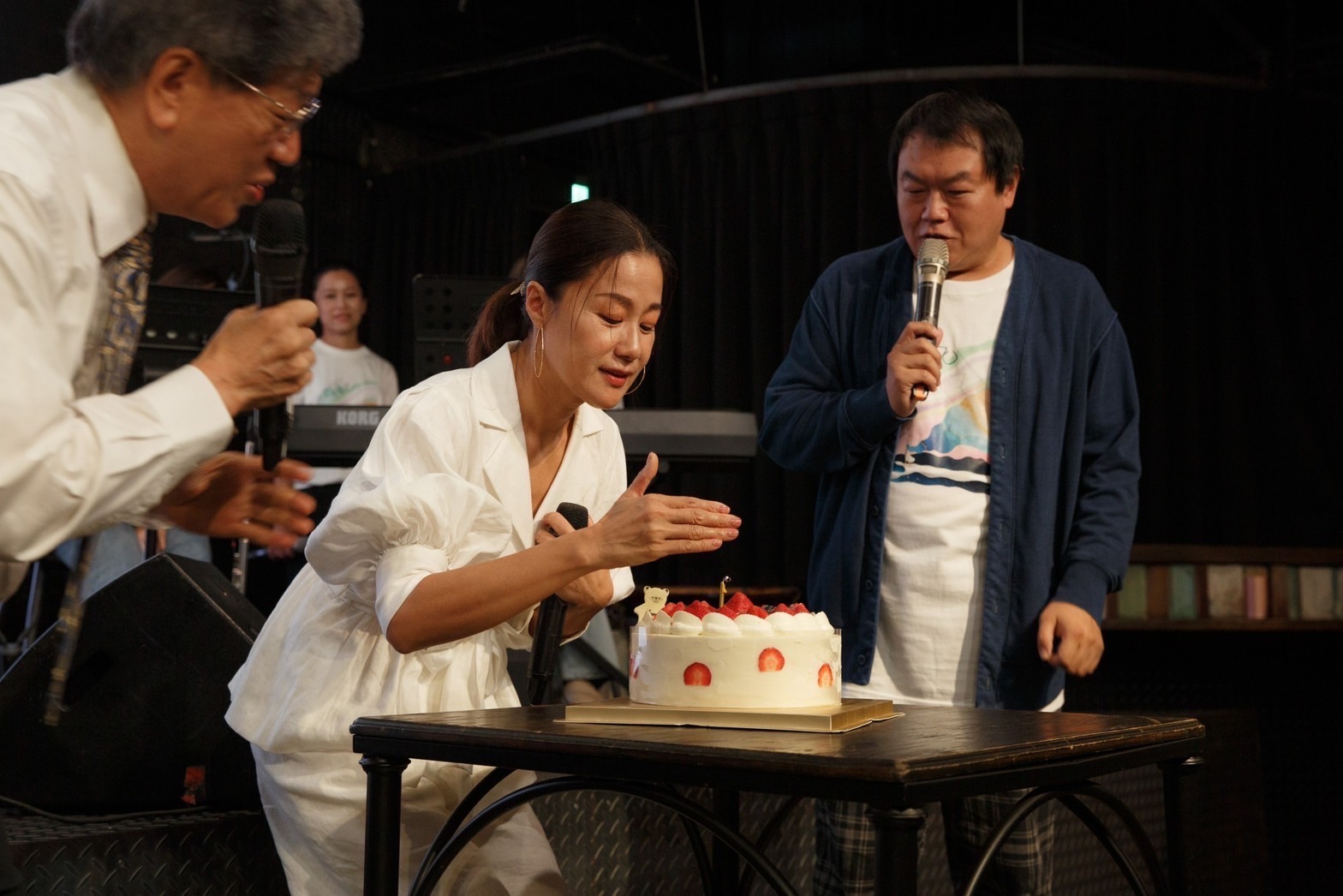 陳玉蓮,意外驚喜收到現場觀眾替她準備的慶生,讓她相當感動。(照片/賣夢工作室提供)