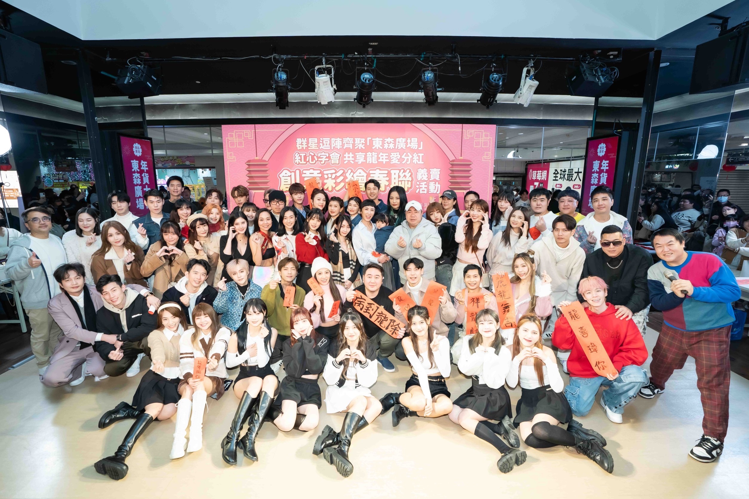 董至成、林采緹、蔡允潔、小優(游振宜)、黃氏兄弟瑋瑋(黃挺瑋)等60位藝人網紅齊聚一堂,28日下午出席在台北車站東森廣場K區地下街所舉辦的龍年愛分紅「創意彩繪春聯」為紅心字會弱勢家庭兒童募集營養餐費的義賣春聯活動,眾星紛紛各司其職使出渾身解數,有的展露筆墨功夫寫春聯,有的負責彩繪紅包還有當場叫賣,其他人則是手捧愛心零錢箱,穿梭在地下街裡向沿途的路過民眾募捐善款。