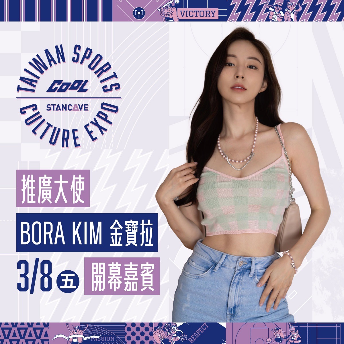此次活動特別邀請有「韓國最美模特兒」之稱,在IG上粉絲追蹤數破百萬的「金寶拉(Bora Kim)」,擔任台灣運動文化展的推廣大使。本身就是一位健身教練的她,曾經擔任過統一獅的開球嘉賓、以及新北國王的特別來賓,並常於自己的頻道分享台灣街頭拍攝美照,此次於「三八」國際婦女節特別來台,將邀請20位台灣運動女孩一同參與個人活動,並將運用策展空間,拍出各個策展裝置藝術的美感。