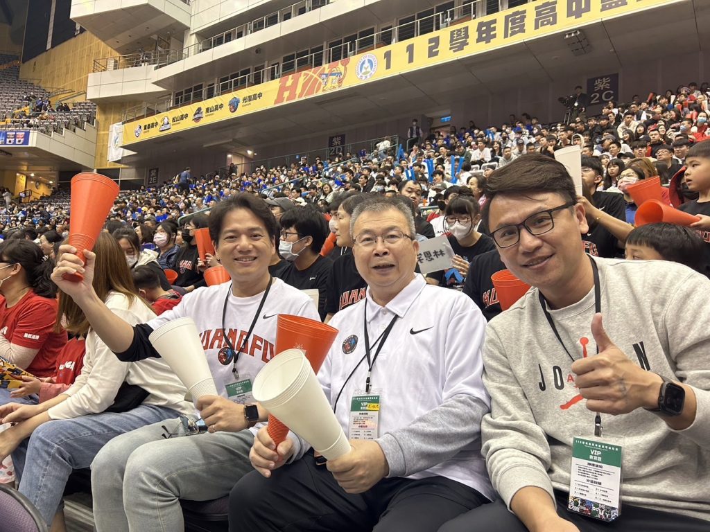邱副市長首次親歷小巨蛋的高中籃球賽事,與現場觀眾一同振奮助威。光復籃猿今年再次進入四強,足見球員們的努力訓練。明日冠亞軍戰,高虹安市長也將親自到場為球隊加油打氣。
