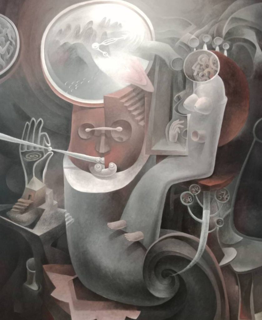 文化局長王翔郁也表示,「竹塹藝術家薪火相傳展」特別表揚藝術家對在地藝文的貢獻,創造藝術交流的平台今年邁入第75檔。此次展覽主題「春風吹又起」象徵生命的起伏如四季的更迭,隨著時間的變化不斷轉化。展覽以《宇宙區塊鏈》系列為主軸,反映作家超越塵世,審視宇宙與人類之間的關係、個體在時空流轉中所經歷的聚散離合,以及對心靈意識的區塊歸屬。
