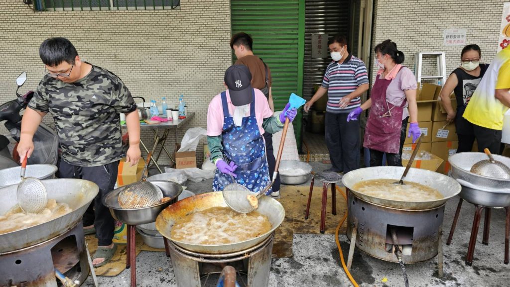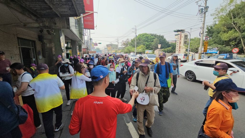 工作人員發放讓遶境信眾品嘗美食。(圖/記者澄石翻攝)