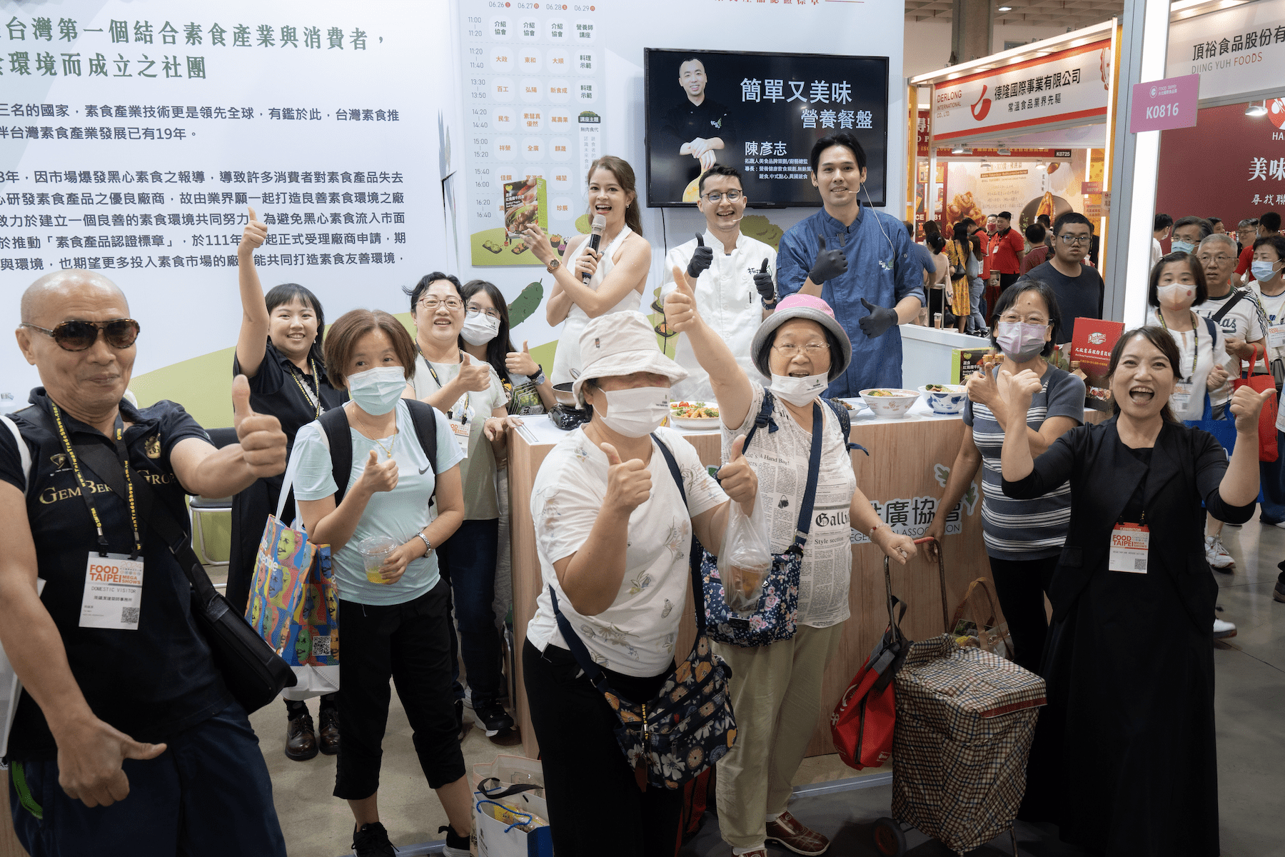 一年一度的台北國際食品展(FOOD TAIPEI)近日於台北南港展覽館1館盛大舉行,台北國際食品展為食品業界的年度盛事,台灣素食推廣協會攜手弘陽生技股份有限公司、全廣食品有限公司、百鮮企業有限公司、麒晟實業有限公司、民生食品工廠、井富油脂企業股份有限公司、富源成食品工業有限公司、四季齋食品有限公司、祥榮生物科技股份有限公司、楊堃興業有限公司、東和油脂開發股份有限公司、素彗真素品商行、優然食品生技股份有限公司、佳饌股份有限公司、百一香食品有限公司、大順素食企業有限公司、新食成股份有限公司、大政食品股份有限公司、滴滴香企業有限公司、百工食品有限公司、道霖有限公司、珍辰貿易有限公司及萬壽果有限公司,除了帶給廣大消費者和業界人士了解素食發展趨勢,也推廣素食五大認證標章。