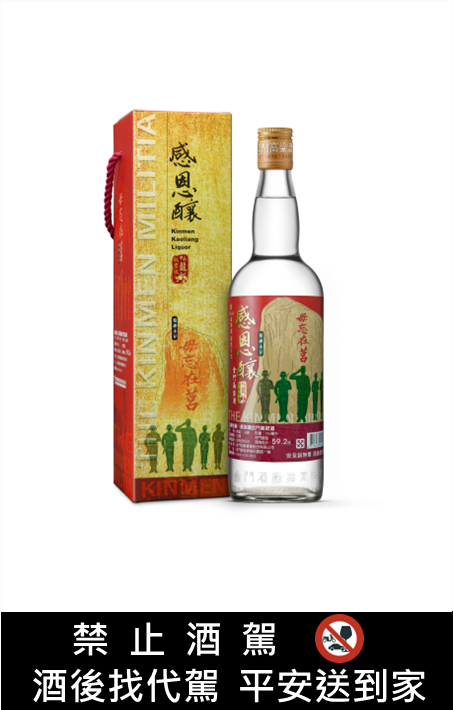 感恩釀金門高粱酒,不僅是一瓶高粱酒,內蘊感謝與尊敬,象徵金門縣政府與金酒公司向曾經歷過戰地政務時期的縣內55歲至64歲英雄們致上最高敬意!