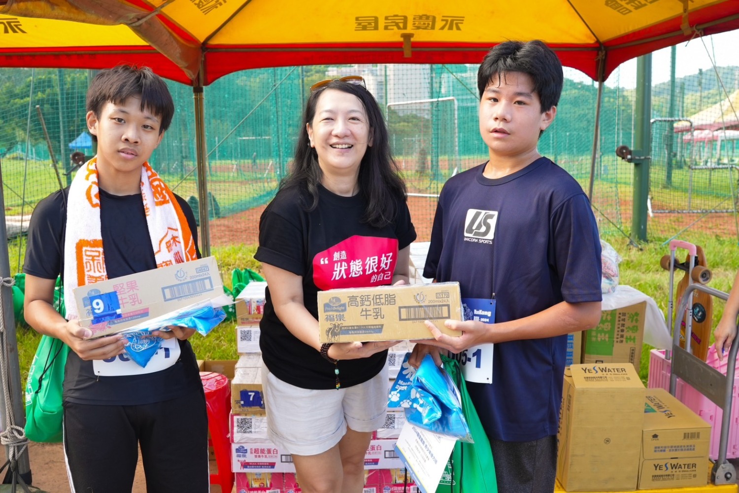 佳格食品集團由永續長陳文琪代表捐贈小朋友接力組130箱福樂牛乳。(圖/永悅健康提供)