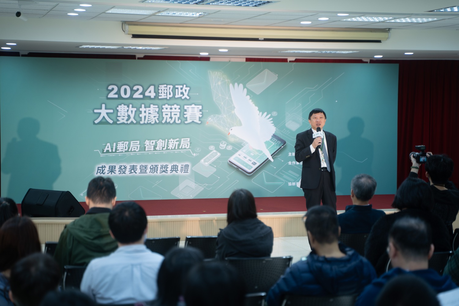 中華郵政公司今(29)日舉辦「AI 郵局 智創新局—2024 郵政大數據競賽」頒獎典禮,頒發競賽隊伍前 3 名、最佳應用獎 1 名、最佳創意獎 1 名、優等獎 10 名、指導教授獎金與感謝狀及數據應用創新獎 4 名,總獎金新臺幣 120 萬元,得獎隊伍所提創新方案將有機會落地應用,為郵政事業注入嶄新發展動能。頒獎典禮由中華郵政公司總經理江瑞堂、Amazon Web Services(AWS) 台灣暨香港企業銷售暨策略副總經理謝佳男、叡揚資訊總經理胡瑞柔、亞太行銷數位轉型聯盟協會理事長吳秀倫及中華郵政公司多位高階主管出席共襄盛舉。