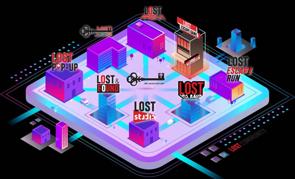 源自香港、橫跨亞太地區的遊戲品牌 LOST密室逃脫,總是不斷的推出新點子,打造新密室,在遊玩的帶動下,導入歷史、文化、教育、科技等題材,設計在密室機關內,讓你邊動邊想,還要讓你邊怕邊玩,最後是否能突破機關設計,就得看你的能力了!