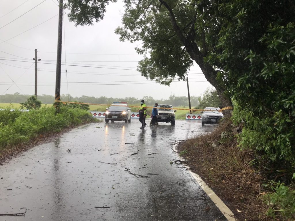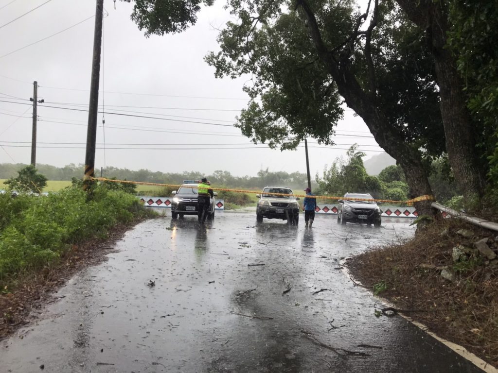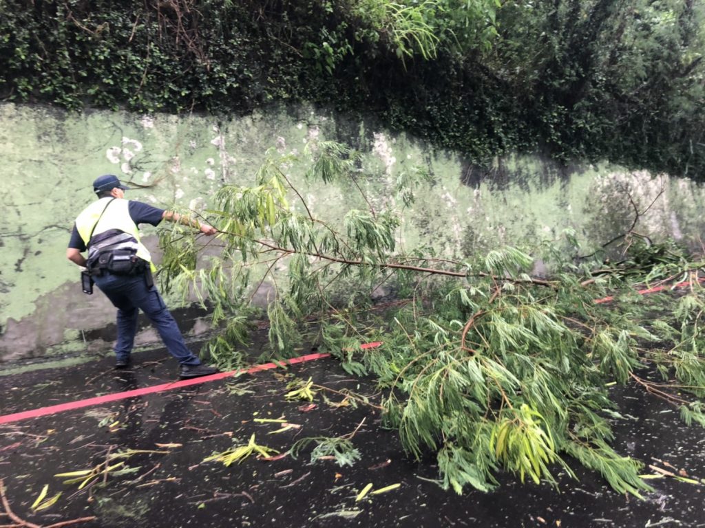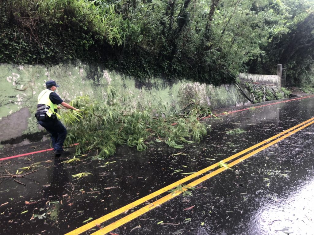 富里分駐所警員翁帥正擔服10-12時勤查勤務,行經花蓮縣富里鄉學田村太子宮旁產業道路,因颱風外圍環流見樹枝折斷倒地,立即在現場打開警示燈警示過路民眾,將樹枝清除放置空曠處,順利恢復道路雙向通行。