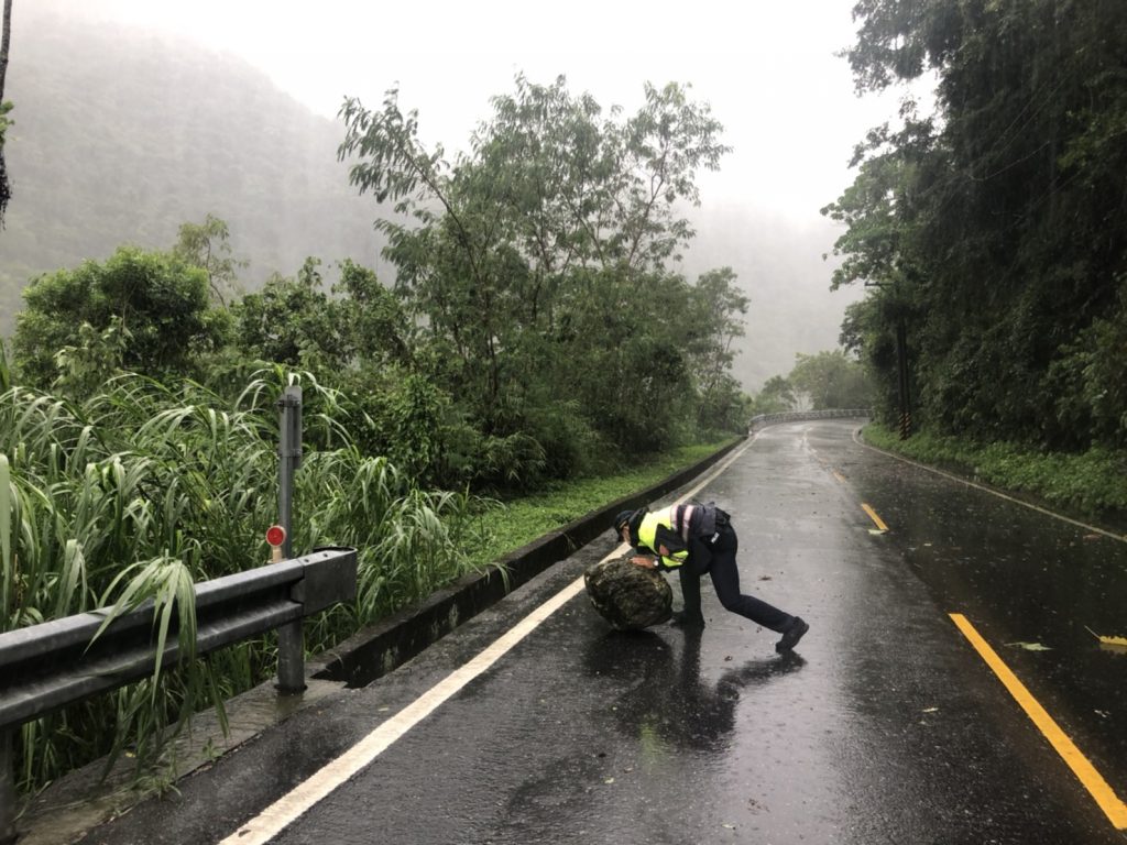 卓樂派出所警員湯奕碩、東里所警員唐氏恩執行10-12時巡邏勤務,於11時許巡邏至台30線10k處發現路旁路樹倒塌且有落石掉於路面,2名員警立即靠邊停車並下車徒手將落石推離路面,以免憾事發生。