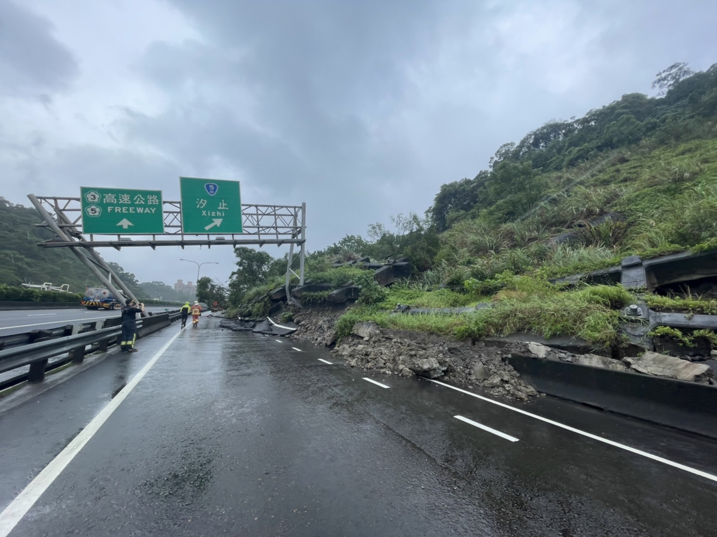 昨(1)日11時15分於國道1號南下10.2K處發生土石邊坡滑落,目前汐止交流道完全封閉,新北市政府消防局立刻出動8車29人前往搶救,所幸無人傷亡,請用路人提早改道。