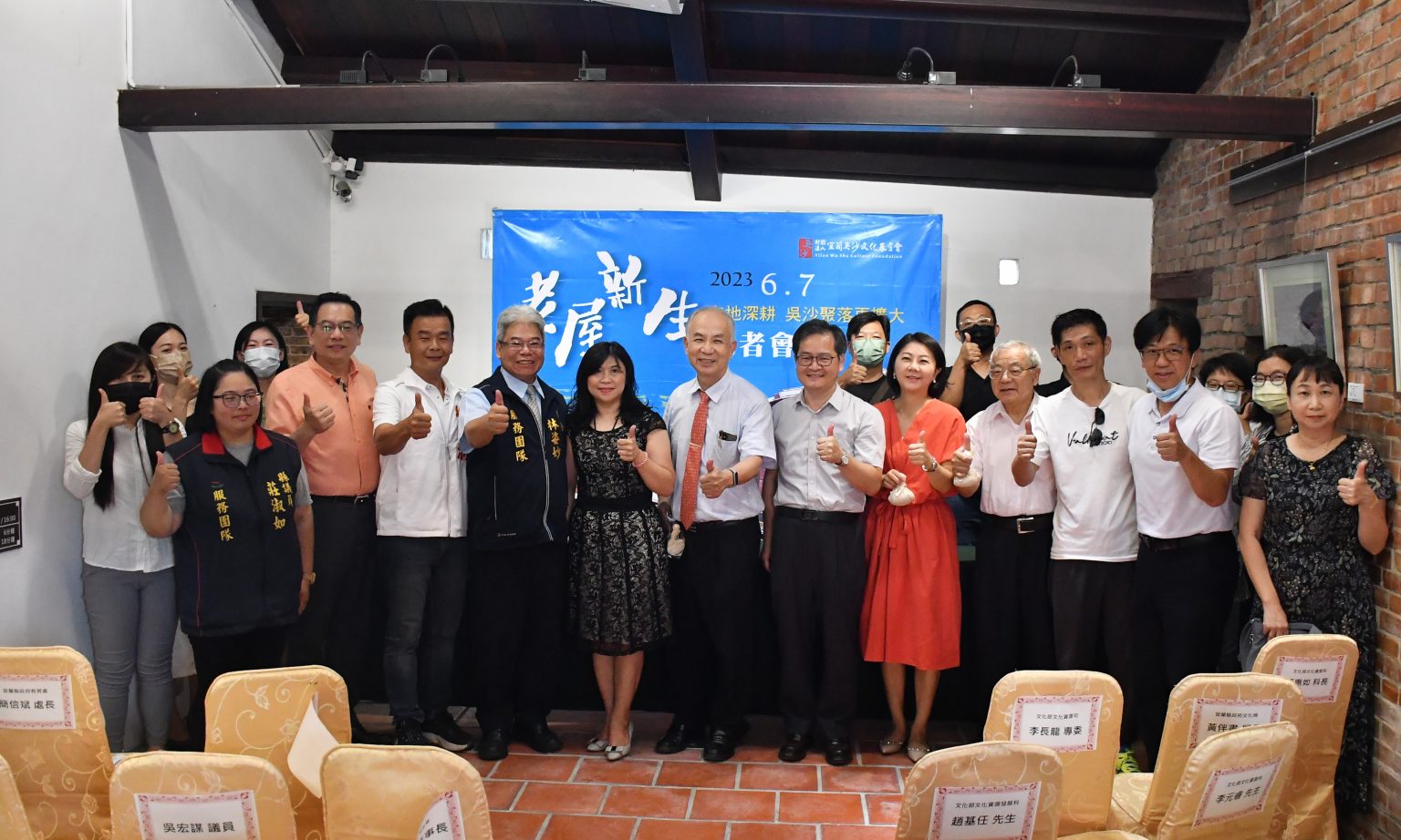 為歡慶這難得的時刻,於6月7日在吳沙故居舉辦「老屋新生:吳沙聚落再擴大」發表記者會,文化部文化資源司專委李長龍、宜蘭縣政府文化局局長黃伴書、宜蘭縣政府教育處處長簡信斌、宜蘭縣議員林聰池、吳沙文化基金會董事陳進傳,以及許多支持在地老屋新生議題的貴賓們都到場表示支持。李長龍專委表示,文化部運用前瞻基礎建設的預算補助私有老建築的修護,107年至今已補助150多案,目前已有90多案完工。很高興吳沙聚落老屋修建能成為其中的一份子,期待能透過地方文化記憶的保存加深在地文化底蘊,引入更多藝文資源,從地方、宜蘭縣,甚至是全台的遊客都能吸引而至,讓老屋從此新生,生生不息。