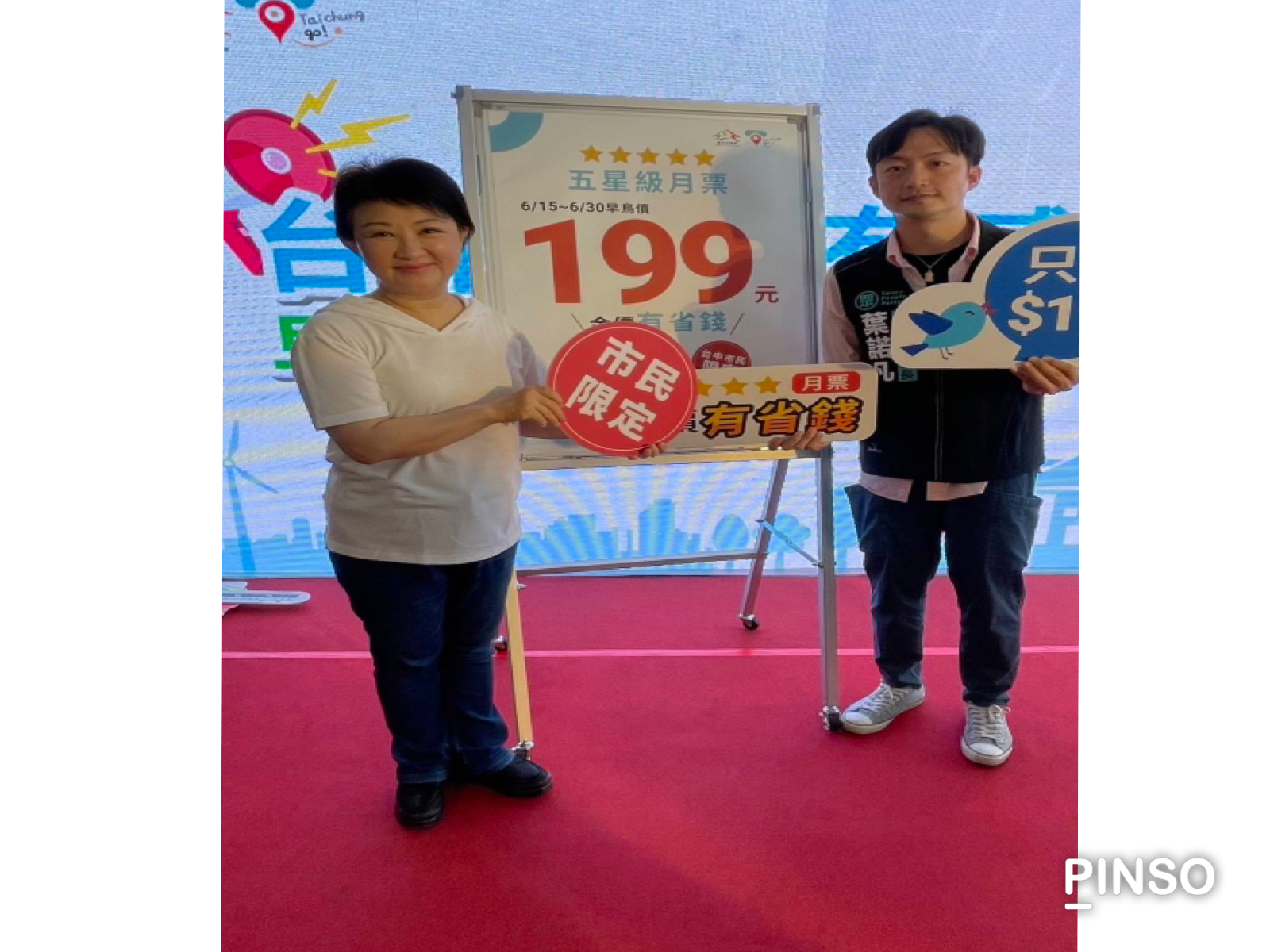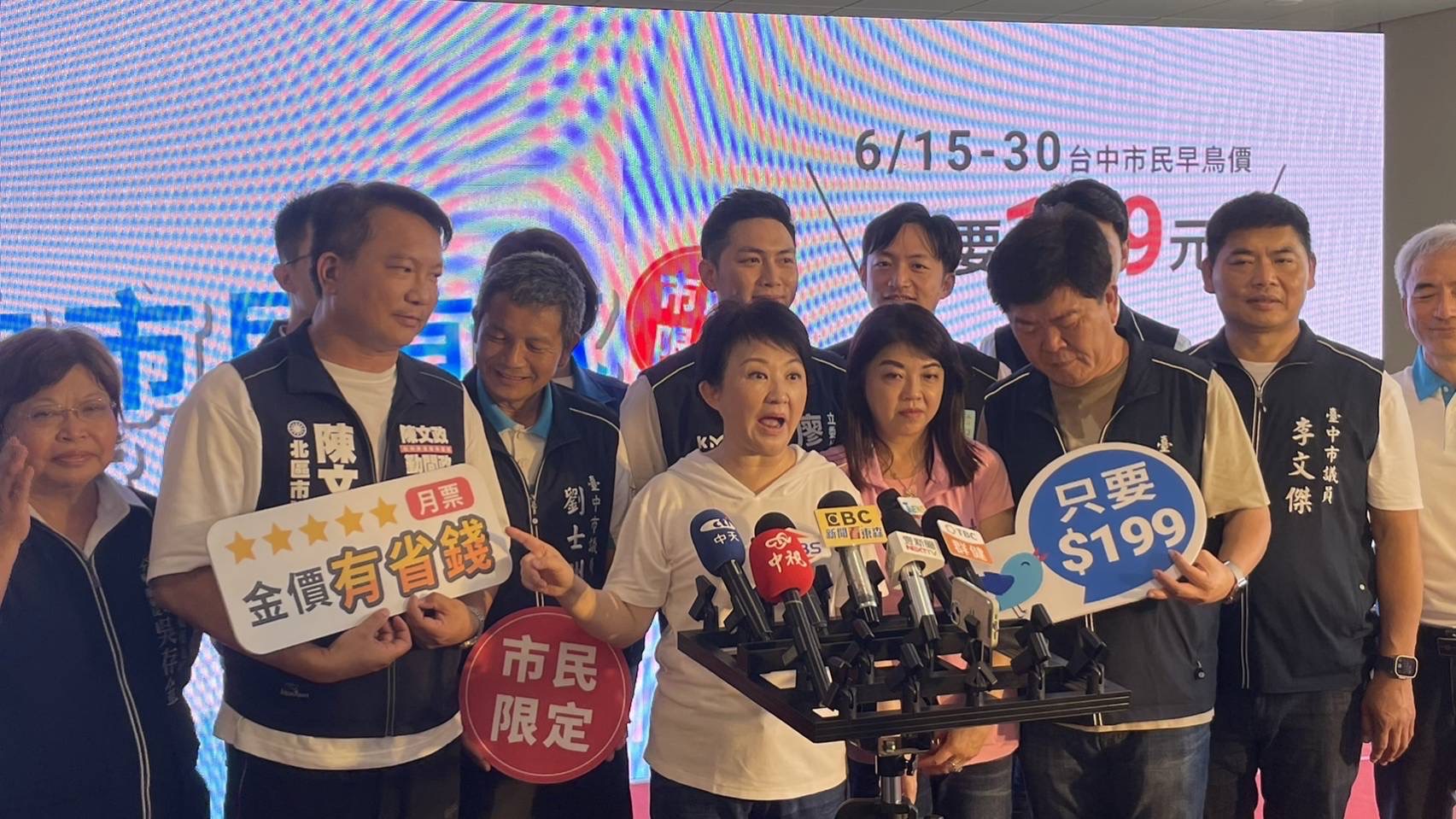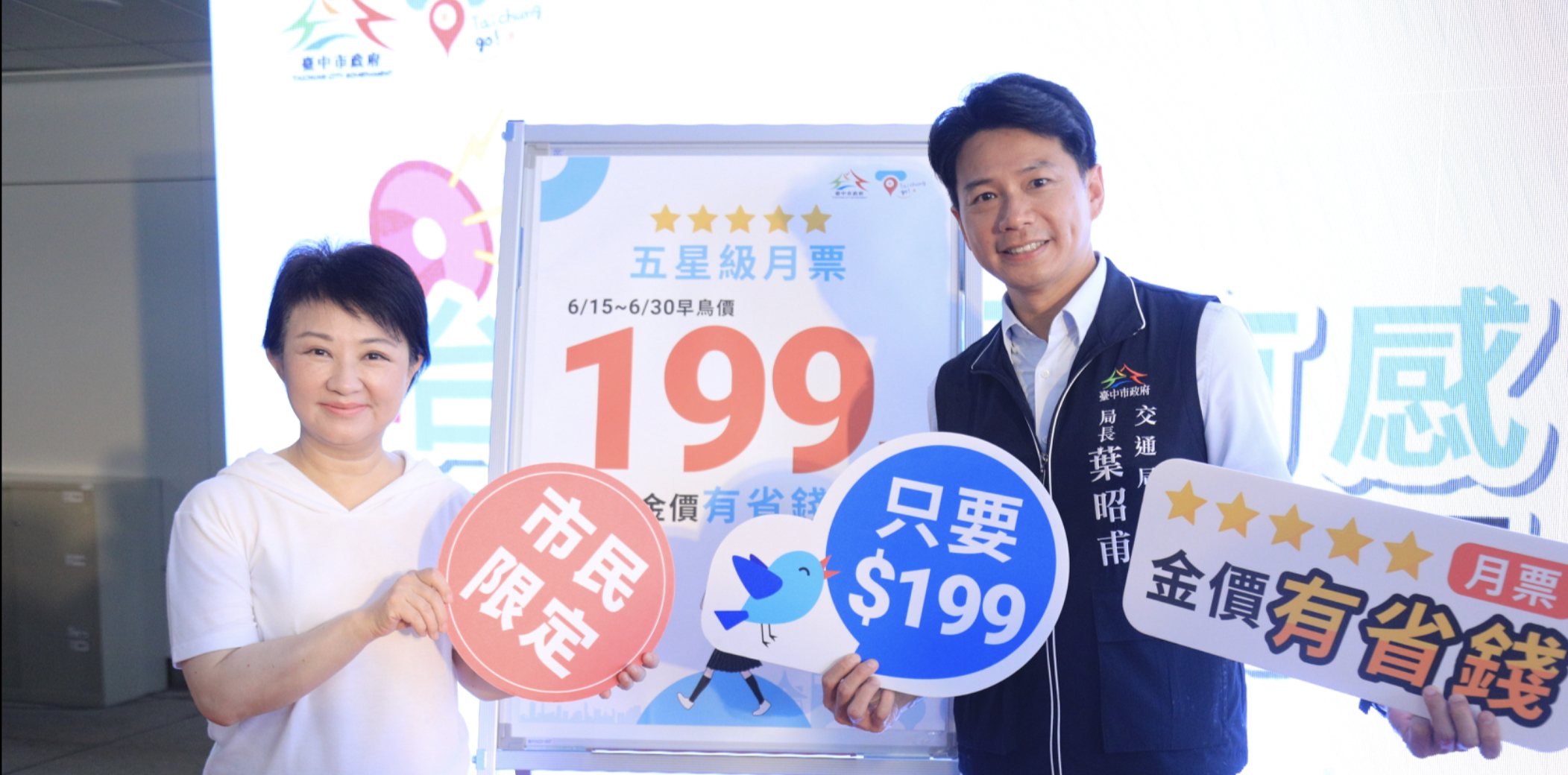 台中市交通月票全國最便宜!市府配合行政院「中央促進公共運輸使用方案」,推出台中市公共運輸定期票及中彰投苗公共運輸定期票,市府今(10)日在台中捷運市政府站舉行早鳥預售優惠記者會。市長盧秀燕出席表示,交通月票將於6月15日起開始預售,並祭出市民專享的五星級早鳥優惠,6月15至6月30日購買市境內定期票,原價每月299元的交通月票只要199元,平均每日搭車「吃到飽」只要銅板價,讓民眾享受省荷包「有省錢(台語)」的優惠。