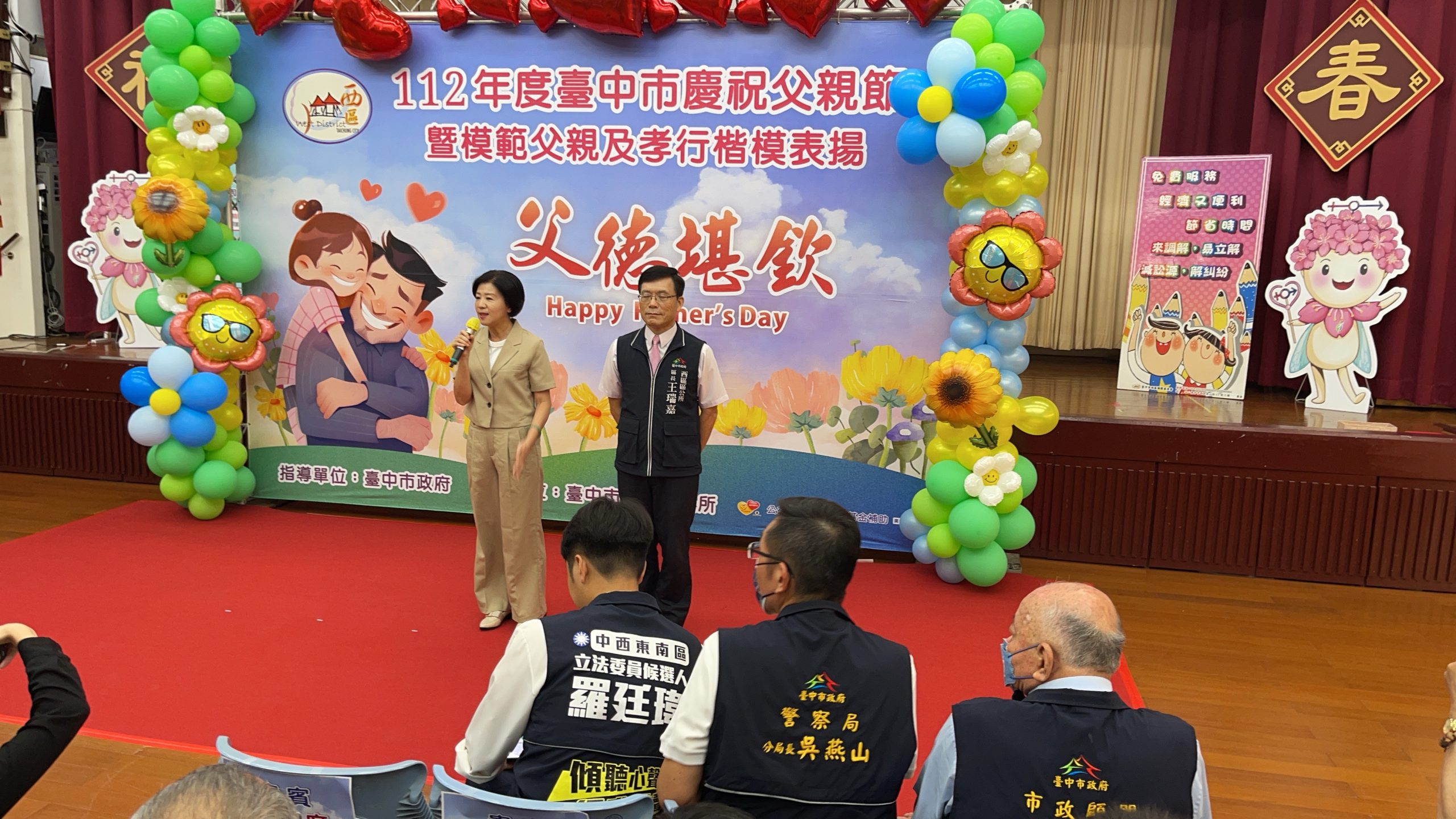王副市長讚揚孝行楷模們默默付出,侍奉親長,也感謝所有父親為家庭和子女所做的犧牲奉獻。爸爸是家庭的支柱,也是孩子們最好的榜樣,為了讓孩子和家人們能夠得到快樂和幸福,他們付出了很多照顧家庭的努力。現今的職場角色更加多元,爸爸可以是護理師或居家托育人員,媽媽也可以是警察或消防隊員。市府團隊努力推動提升職場友善,落實性別平等,完善公共廁所、哺集乳室、停車空間等,打造關懷友善臺中。